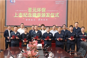 聖元環保旗下莆田、曹縣、盱眙、天長、泉州、安溪廠給員工頒發上市紀念徽章