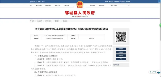 6月3日至5日(ri),鄆(yun)城(cheng)聖(sheng)元(yuan)組(zu)織(zhi)開(kai)展(zhan)公(gong)眾(zhong)參(can)觀(guan)公(gong)司(si)環(huan)保(bao)設(she)施(shi)活(huo)動(dong)。活(huo)動(dong)分(fen)線(xian)上(shang)與(yu)線(xian)下(xia)兩(liang)部(bu)分(fen)。公(gong)眾(zhong)既(ji)可(ke)通(tong)過(guo)關(guan)注(zhu)企(qi)業(ye)公(gong)眾(zhong)號(hao)線(xian)上(shang)參(can)與(yu),也(ye)可(ke)通(tong)過(guo)預(yu)約(yue)報(bao)名(ming)的(de)方(fang)式(shi)線(xian)下(xia)參(can)與(yu)。為(wei)做(zuo)好(hao)預(yu)約(yue)報(bao)名(ming)工(gong)作(zuo),鄆(yun)城(cheng)聖(sheng)元(yuan)將(jiang)已(yi)編(bian)製(zhi)的(de)《2020年“六·五”環境日宣傳工作實施方案》在鄆城縣人民政府網站公示,同時將6月5日設為公司環保設施公眾開放日。
