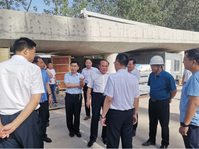 李錄軍總指揮就項目工程進度、人力資源投入、安全文明施工和夏季防暑措施、疫情防控等情況及項目建成後帶來的社會效益、經濟效益和環保效益等做了詳細彙報。