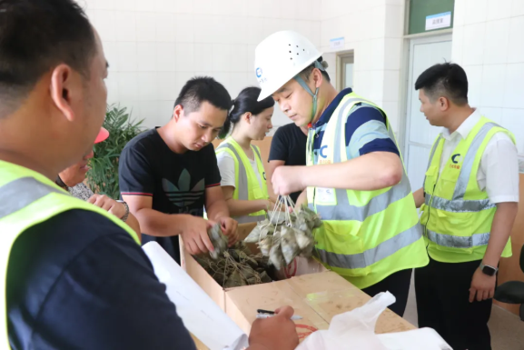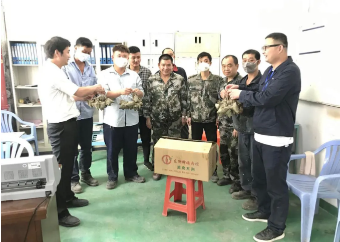 何敏副總現場轉達了董事長的心意。南安聖元人事行政部和泉州聖元項目部統一組織下發飽含祝福與關愛的端午粽。手提粽子、心領祝福,員工們喜悅之情溢於言表。