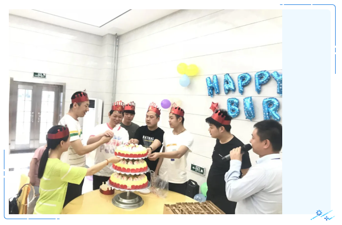 weilerangshouxingganshoudaolaizigongsiderechenguanhuai,renshixingzhengbujingxinbuzhilexianchang,bingzhunbeileshengriliwuhexiangtiankekoudedangao。yehongxiazongjiandaibiaogongsiweishouxingmensongshangmeihaodeshengrizhufu,rangzhechangshengrihuijingxibuduan、祝福滿溢。在一曲悠揚的生日歌中,壽星們許下生日願望、吹熄生日蠟燭。生日會現場歡聲笑語,溫情濃濃。
