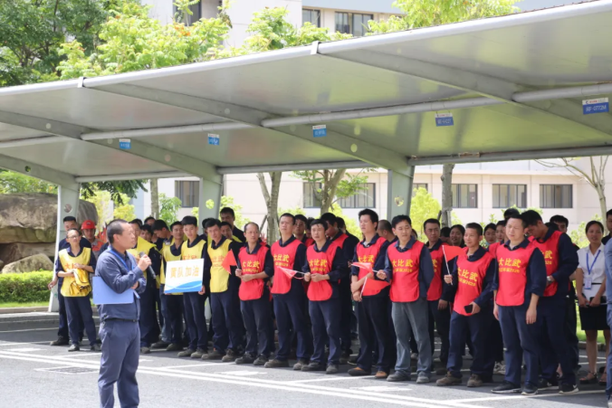 隨後,機務檢修(鋼板焊接)、消防應急兩個項目作為啟動儀式熱身賽率先開賽。“向後轉,起步走!”王郎生產副總一聲令下,紅、黃兩隊列隊到達指定區域開始比武。參賽人員精神抖擻投入到比武中......