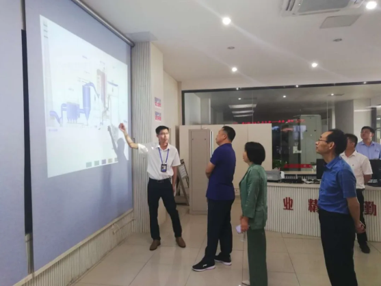 陸和軍主任一行先後參觀了中控室、鍋爐車間及尾氣車間等區域,聽取林建武總監關於江蘇聖元基本概況、安全生產管理體係、特種設備管理、生產運營等情況介紹。還通過視頻資料詳細了解垃圾焚燒發電工藝流程及設備運行情況。