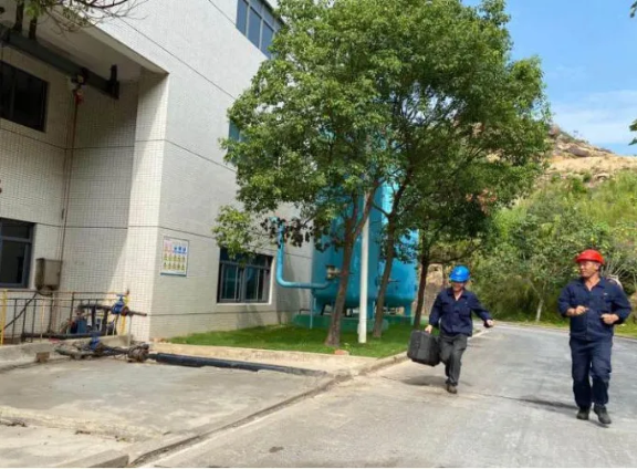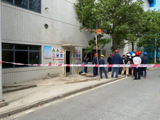搶險組接到救援指令後立即組織救援人員攜帶應急救援設備趕往現場,快速穿戴正壓式呼吸器後進入收集池救援。
