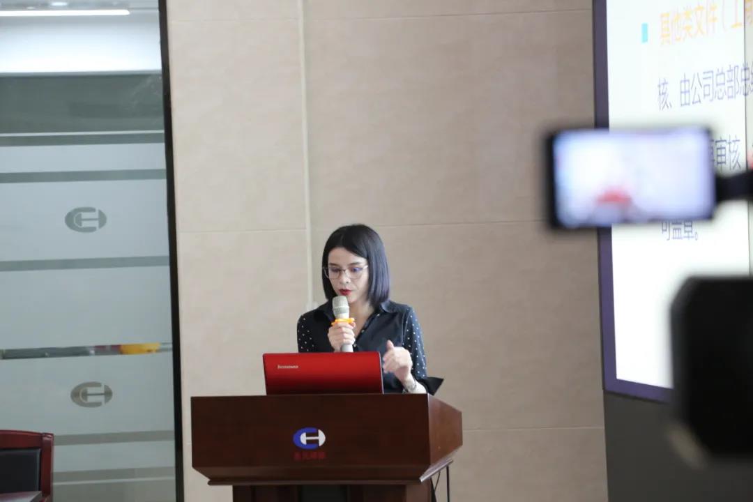 培訓主要針對公司現行的《印章管理暫行規定》展開係統的學習宣貫。林婷婷結合現實案例,闡述公司印章的範圍、管理及違規用章的責任,還重點講解各類印章的刻製、使用審批流程、用印資料留底、保管責任、印章管理風險管控等方麵的內容。