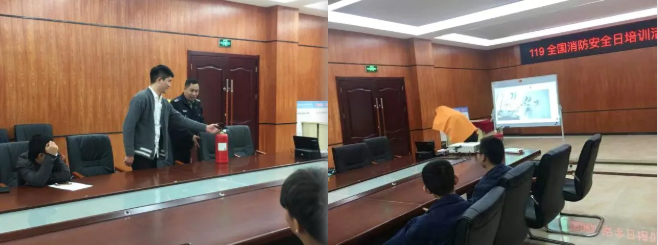 培訓課上講師還示範性操作了滅火器等消防器材的使用方法。參訓人員說:“親手拿起滅火器噴滅火焰還是和想象中有一些區別,今天真是實實在在上了一堂安全教育課!”