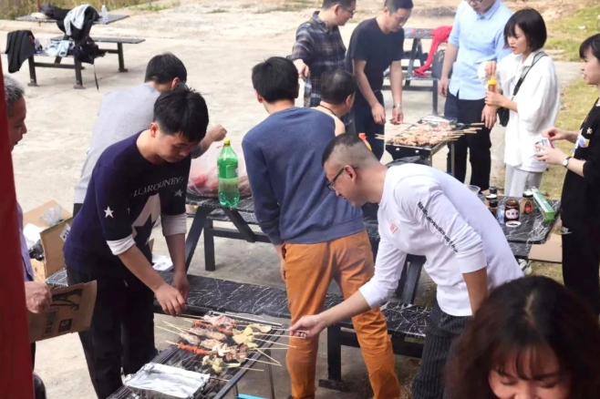 返回山腳的草地上,大家擼起袖子參與到自助燒烤的準備工作中來。生火、洗菜、切肉、串肉......dajiafengongmingque,gesiqizhi,jiuxiangdadangduoniandetuandui,moqishizu。yichuanchuanshicaizaitanhuodezhikaozhongbianchenglemeiweijiayao,dajiabianxiangshouzijikaozhidemeishi,bianliaozhegongzuo、生活中的趣事,歡聲笑語隨著嫋嫋炊煙縈繞在空中。