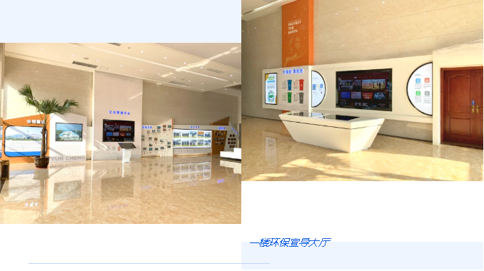 廠區辦公樓的環保展廳,把環保科普、垃圾分類互動遊戲、垃圾發電的優勢、垃圾發電核心實力、五廢達標控製及環保生活等幾大板塊串聯起來,多層次表達環境保護這個大主題。