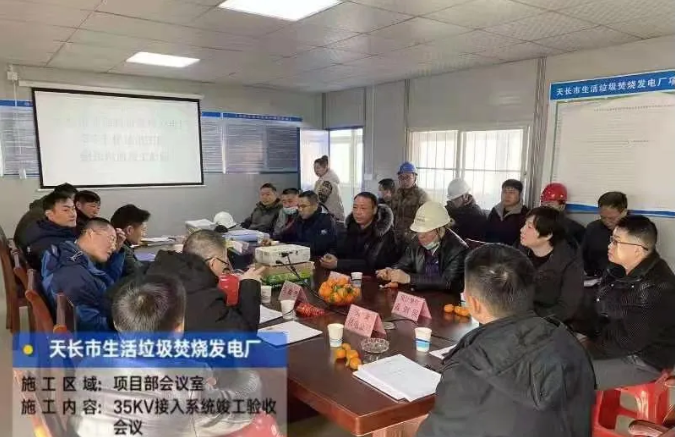 聖元環保天長市生活垃圾焚燒發電廠項目開工以來,先後經過三次電力監檢,於1月12日通過滁州市供電公司組織的專家組驗收。項目推進過程,項目部積極協調各方,解決光差保護等問題,確保了順利建設和驗收。