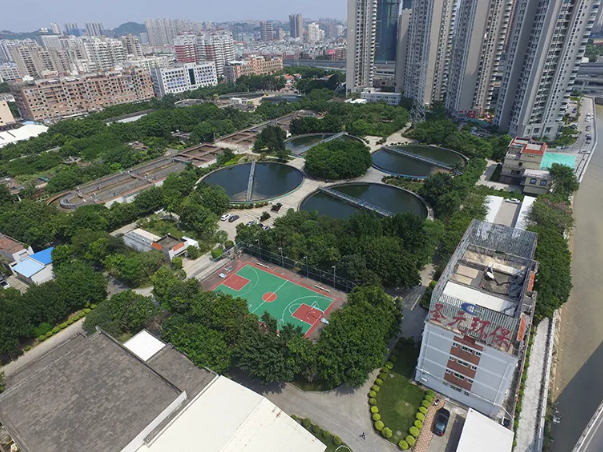 寶洲汙水處理廠作為第二批全國環保設施和城市汙水垃圾處理設施向公眾開放單位,始終堅持高標準建設、高品質運營、精細化管理,長期注重社會、環境、經濟效益協調發展,致力打造花園式廠區,建設“鄰利型”項目。2018年,寶洲汙水處理廠完成提標改造,4個巨大的圓形汙水處理池成為了“花園”的主要景觀,四周綠蔭環繞,漫步在鋪設了塑膠跑道的廠區內與普通公園相差無幾,徹底顛覆普通大眾對汙水處理廠的傳統印象。