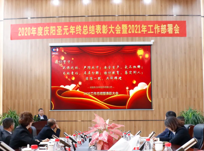 近日,慶陽聖元召開2020年終總結暨2021年度工作部署會,總結成績、表彰先進,動員全體員工團結協作,在新的一年做好“環保達標、嚴防死守;安全生產,永不鬆懈;目標責任,層層分解;培訓教育,落實到人;團結一致,共創輝煌”總體要求,落實各項工作目標。