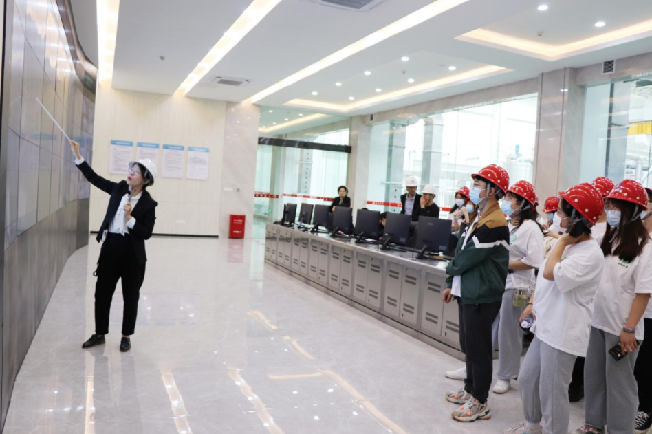 隨後,同學們前往餐廚垃圾資源化處理項目,通過參觀環保展廳和中央控製室,全麵了解項目運作模式、處理工藝和處理規模。對於項目采用的“餐廚垃圾預處理+有機漿料厭氧發酵+沼氣發電”的處理工藝,同學們興趣濃厚,積極與工作人員探討。