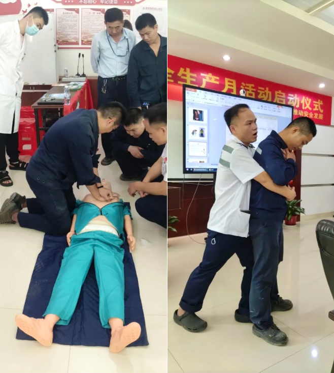 講座上,李維義醫師為大家詳細講解了職業病的定義、危(wei)害(hai)和(he)防(fang)治(zhi)對(dui)策(ce)等(deng),讓(rang)廣(guang)大(da)員(yuan)工(gong)進(jin)一(yi)步(bu)了(le)解(jie)職(zhi)業(ye)病(bing)。胡(hu)遠(yuan)揚(yang)醫(yi)師(shi)將(jiang)理(li)論(lun)與(yu)實(shi)操(cao)相(xiang)結(jie)合(he),展(zhan)現(xian)心(xin)肺(fei)複(fu)蘇(su)和(he)海(hai)姆(mu)立(li)克(ke)急(ji)救(jiu)法(fa)的(de)操(cao)作(zuo)要(yao)點(dian)和(he)注(zhu)意(yi)事(shi)項(xiang)。員(yuan)工(gong)們(men)專(zhuan)注(zhu)聽(ting)講(jiang),並(bing)在(zai)人(ren)體(ti)模(mo)型(xing)身(shen)上(shang)進(jin)行(xing)彎(wan)腰(yao)、按壓、吹chui氣qi等deng急ji救jiu步bu驟zhou,現xian場chang氣qi氛fen十shi分fen活huo躍yue。參can訓xun員yuan工gong表biao示shi,公gong司si會hui定ding期qi舉ju辦ban現xian場chang急ji救jiu培pei訓xun,學xue習xi鞏gong固gu這zhe些xie知zhi識shi和he技ji能neng能neng在zai生sheng死si一yi線xian的de關guan鍵jian時shi刻ke救jiu人ren一yi命ming,所suo以yi要yao好hao好hao學xue、認真練。