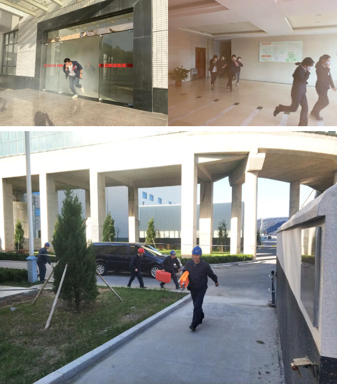 演yan練lian模mo擬ni廠chang區qu某mou處chu發fa生sheng火huo情qing後hou,公gong共gong廣guang播bo係xi統tong發fa出chu消xiao防fang警jing報bao,員yuan工gong聽ting到dao警jing報bao聲sheng,用yong濕shi毛mao巾jin或huo手shou捂wu住zhu口kou鼻bi,俯fu身shen依yi次ci從cong中zhong跑pao出chu,按an照zhao指zhi定ding疏shu散san路lu線xian迅xun速su有you序xu地di撤che離li到dao室shi外wai空kong地di上shang。救jiu援yuan人ren員yuan則ze按an照zhao應ying急ji預yu案an,對dui初chu期qi火huo災zai進jin行xing撲pu救jiu,同tong時shi完wan成cheng警jing戒jie疏shu散san、現場救援等環節,順利完成了演練的各項內容,達到了預期的目的。