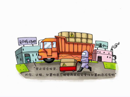 收集、貯存危險廢物,必須按照危險廢物特性分類進行。禁止混合收集、貯存、運輸、處置性質不相容而未經安全性處置的危險廢物。貯存危險廢物必須符合《危險廢物貯存汙染控製標準》(GB 18597),並不得超過一年;確需延長期限的,必須報經原批準經營許可證的環境保護行政主管部門批準。禁 止將危險廢物混入非危險廢物中貯存。