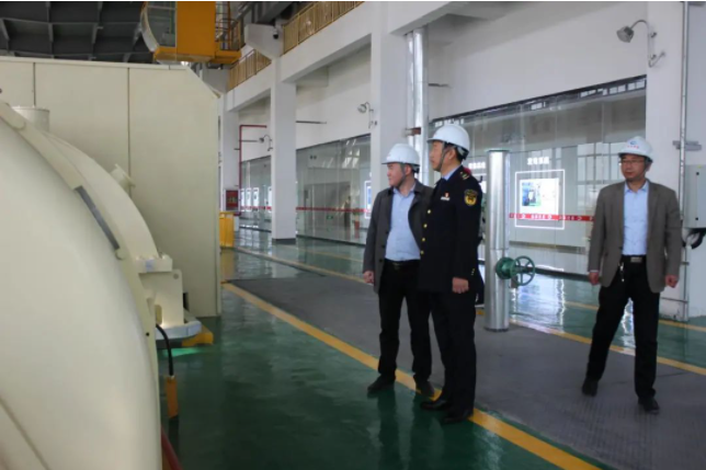 行xing政zheng執zhi法fa局ju領ling導dao深shen入ru生sheng產chan一yi線xian,實shi地di察cha看kan公gong司si生sheng產chan車che間jian及ji生sheng產chan設she備bei,參can觀guan環huan保bao展zhan廳ting及ji參can觀guan走zou廊lang,了le解jie項xiang目mu概gai況kuang及ji科ke普pu教jiao育yu工gong作zuo開kai展zhan情qing況kuang,聽ting取qu曾zeng昭zhao雄xiong總zong監jian就jiu技ji術shu工gong藝yi、生產運營及安全管理等情況作彙報。