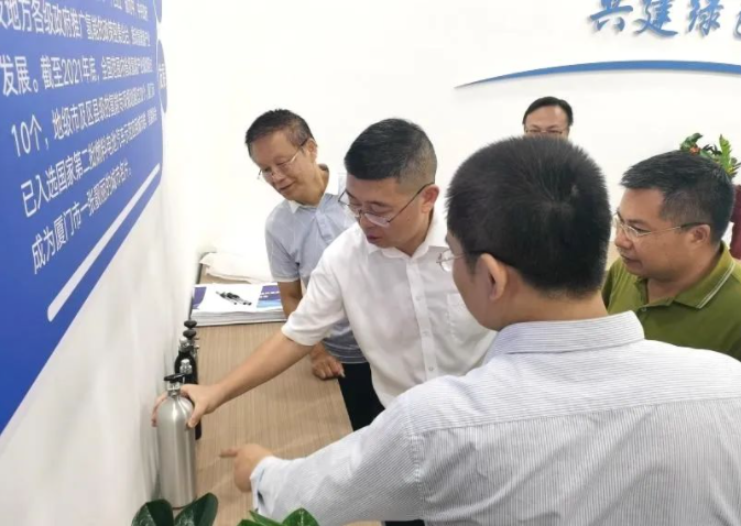 6月30日,林東廓總經理一行考察龍岩市上杭縣蛟洋工業園區,與上杭縣副縣長張永湘、園區管委會領導了解當地產業和企業現狀、投資優惠條件以及產業扶持政策等。並先後走訪了福建新安科技有限責任公司、福建德爾科技股份有限公司、福建常青新能源科技有限公司等多家企業,向企業負責人詳細了解企業生產情況、未來發展、氫氣產量、上下遊工藝及合作意向等。
