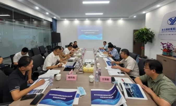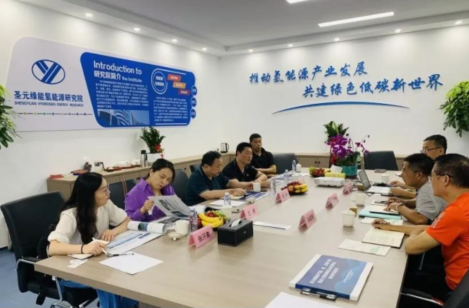 林東廓總經理向各位到訪領導詳細介紹了聖元環保的企業概況和發展規劃,及聖元綠能的氫能項目、儲氫技術、固態儲氫應用場景和投資項目等情況。