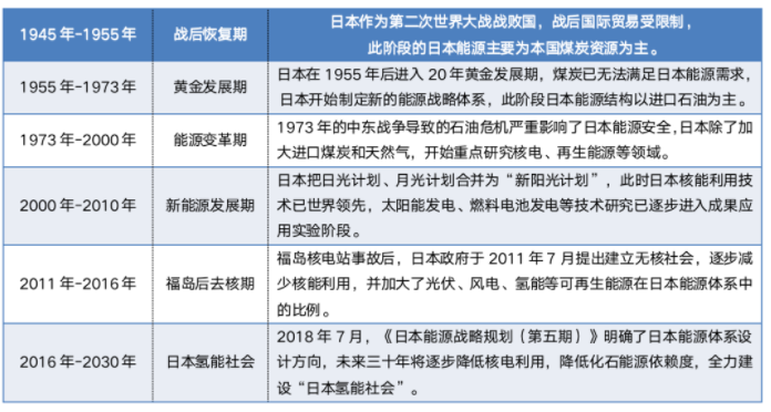 氫(qing)能(neng)在(zai)日(ri)本(ben)能(neng)源(yuan)戰(zhan)略(lve)規(gui)劃(hua)中(zhong)占(zhan)有(you)極(ji)其(qi)重(zhong)要(yao)地(di)位(wei),自(zi)第(di)二(er)次(ci)世(shi)界(jie)大(da)戰(zhan)以(yi)來(lai),日(ri)本(ben)能(neng)源(yuan)體(ti)係(xi)發(fa)展(zhan)自(zi)大(da)致(zhi)經(jing)曆(li)了(le)六(liu)個(ge)階(jie)段(duan),日(ri)本(ben)近(jin)十(shi)年(nian)陸(lu)續(xu)製(zhi)定(ding)《日本再複興戰略》《氫能與燃料電池戰略發展路線圖》《日本能源戰略規劃》等一係列政策,發展氫能已提升為日本國策,日本將建設全球第一個全麵利用氫能的國家。