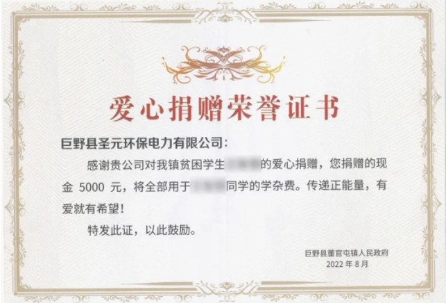 慈善公益事業是一項奉獻愛心、惠及民生的崇高事業,是社會文明進步的重要標誌。聖元環保及各所屬公司始終積極參與其中,從助學助教、節日慰問、春節送溫暖到抗疫救災、扶貧濟困等方麵多措並舉紮實推進,取得了良好的社會反響。