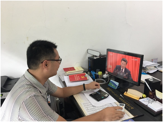 公司黨支部組織黨員及入黨積極分子於公司一樓會議室集中觀看十九大開幕式盛況,各子公司、項目部的黨員同誌也通過網絡電視或網絡直播平台等方式觀看。