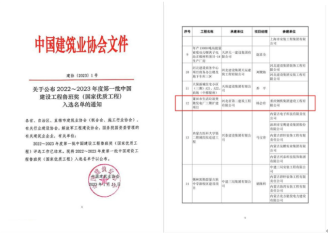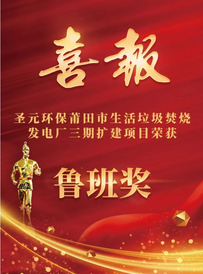 1月11日,中國建築業協會公布2022-2023年度第一批中國建設工程魯班獎(國家優質工程)入選名單,聖元環保莆田市生活垃圾焚燒發電廠三期擴建項目榮獲中國建築行業工程質量最高榮譽——中國建設工程魯班獎(國家優質工程)。