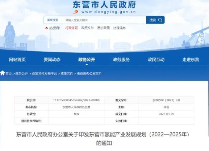 東營市氫能產業發展規劃(2022—2025年)