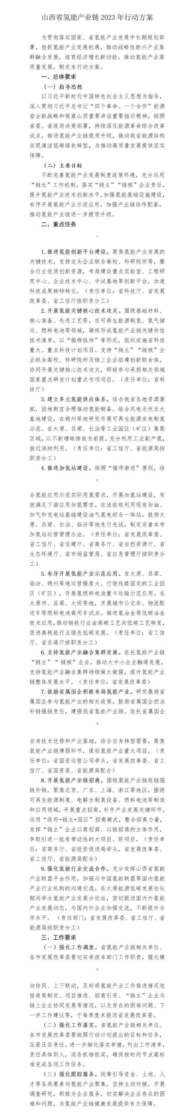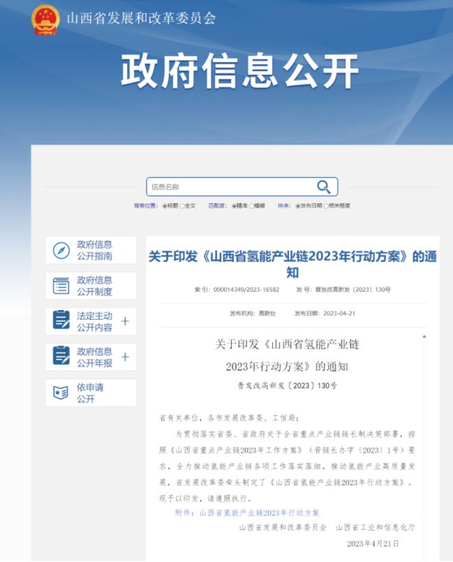 4月21日,山西省發改委發布關於印發《山西省氫能產業鏈2023年行動方案》的通知。