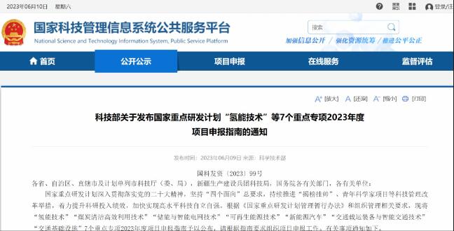 科技部關於發布國家重點研發計劃“氫能技術”等7個重點專項2023年度項目申報指南的通知