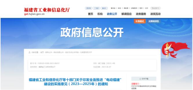 近日,福建省工信廳等十部門聯合發布了《全麵推進“電動福建”建設的實施意見(2023—2025年)》。