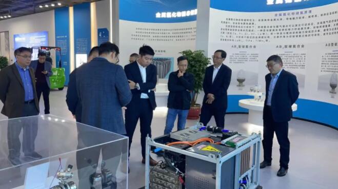 鄧建華副局長一行參觀了氫能源研究院配套實驗室及展廳。劉運權院長、馬兆偉副院長就實驗室整體布局及各研發平台的功能和主要研發、生產設備設施及當前研究院產業化能力與進展作了詳細介紹,並針對研究院合金儲氫材料、固態儲氫裝置、氫能城市觀光車、氫能兩輪車等研發成果與各位領導、專家進行互動交流。