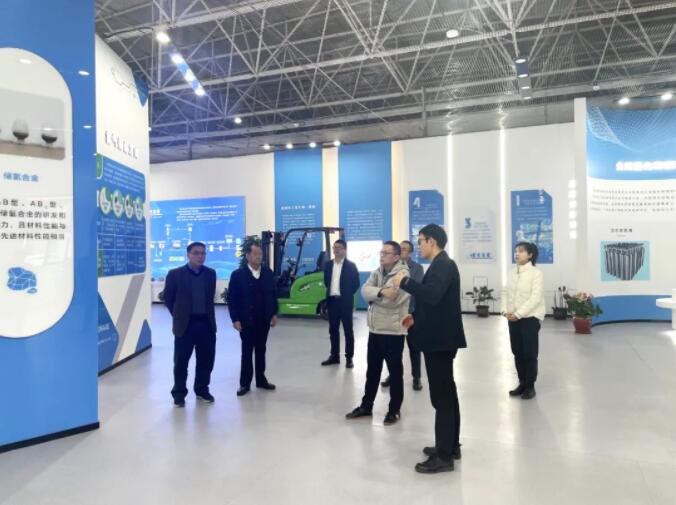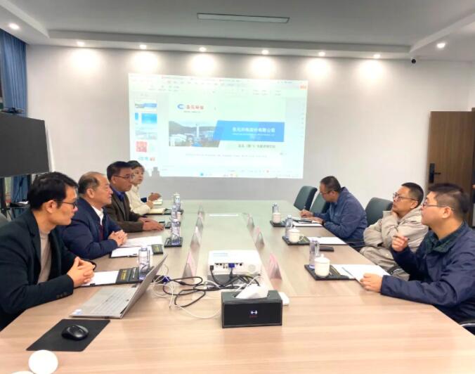 朱煜煊董事長為謝鬆副書記介紹了公司發展曆程和產業規劃。劉運權院長、馬兆偉副院長就公司與廈門金龍旅行車有限公司、廈門廈鎢氫能科技有限公司、廈門稀土材料研究所共同參與的2023年未來產業領域市重大科技計劃項目——“適用於中型客車的金屬氫化物儲氫&低鉑氫燃料電池動力係統開發與集成”的實施單位、組織分工、實施計劃等情況作了詳細彙報。