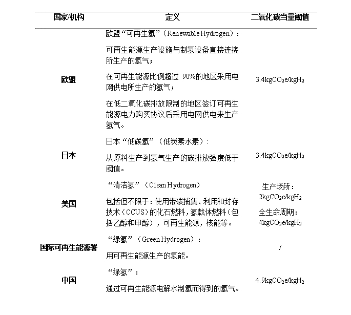 中國“綠氫”定義