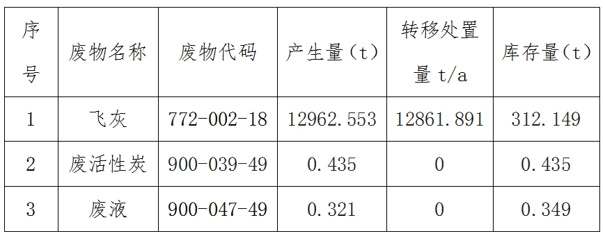 1、飛灰。生活垃圾焚燒產生,暫存於飛灰固化養護車間,定期統一轉運至配套的填埋場填埋處理。