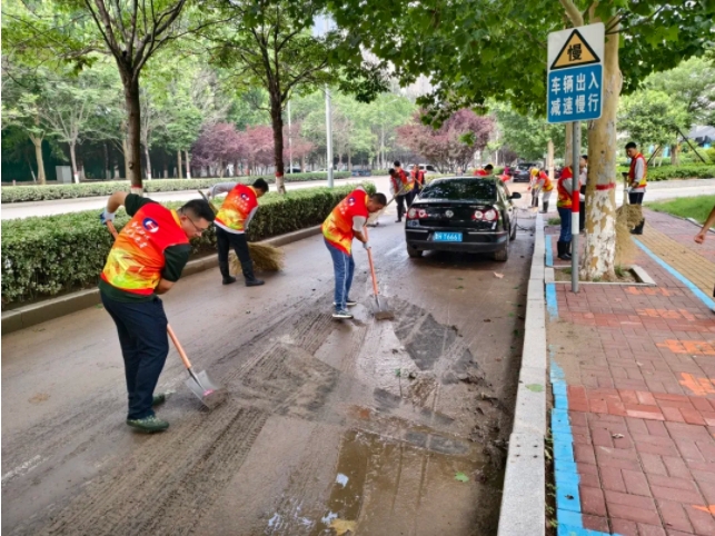 誌願者們攜帶鐵鍬、掃帚等工具,早早來到受災街道,迅速投入到緊張的清淤工作中。在清淤現場,誌願者們不怕髒、不怕累,分工協作,高效完成鏟除淤泥、清掃路麵、搬運垃圾等任務。經過一天的努力奮戰,原本淤泥堆積、垃圾遍布的街道逐漸恢複了往日的整潔與通暢。