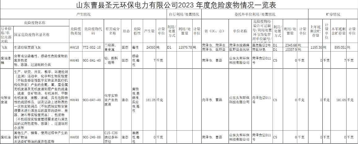 曹縣聖元危廢信息公示