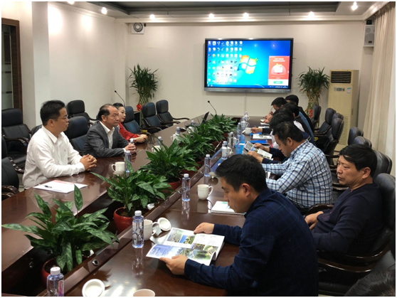 隨後,領導小組來到了聖元環保總部,在董事長朱煜煊、副總經理林文峰、投資總監李依藍的陪同下觀看了公司宣傳片並詳細了解了公司的團隊、員工和管理製度。聖元環保董事長朱煜煊向領導小組介紹了公司的發展曆程和企業文化,領導小組對公司安全第一、成本效益、以人為本的經營理念等給予了充分的肯定。