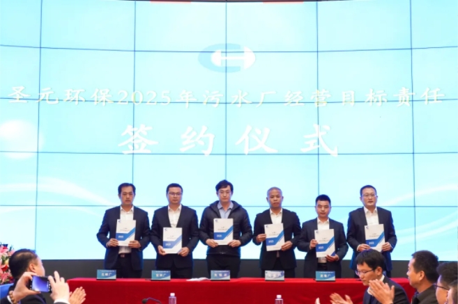 簽約儀式環節,朱恒冰總經理分別與運營電廠、運營水廠領導班子簽訂2025年度經營目標責任書。這一紙“軍令狀”,承載著沉甸甸的責任和使命,是對各責任主體新年工作的期望和要求,也是對公司未來發展的堅定承諾。