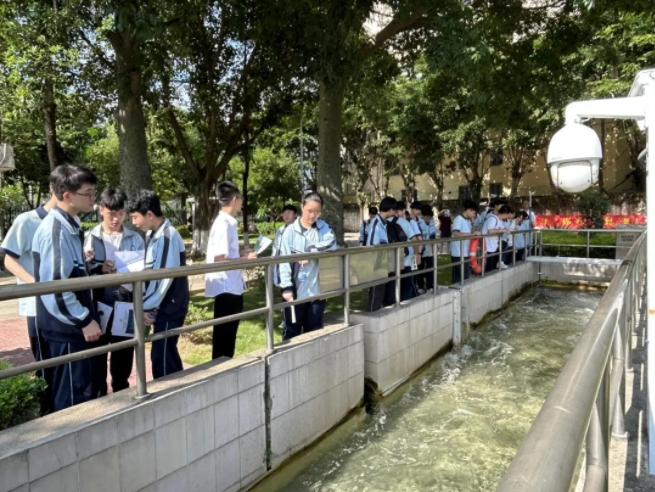 zaibangonglou,linzhihuichangchangfafanghuanbaoxuanchuanshouce,jieheshangqianggongyiliuchengtujianyaojiangjieleshenghuowushuichuliliucheng。suihou,zhuangjunbingfuchangchangdailingxueshengshidicanguanshengwuchi、二沉池、高(gao)密(mi)度(du)澄(cheng)清(qing)池(chi)與(yu)精(jing)密(mi)過(guo)濾(lv)器(qi)房(fang)等(deng)汙(wu)水(shui)處(chu)理(li)設(she)施(shi),詳(xiang)細(xi)介(jie)紹(shao)汙(wu)水(shui)處(chu)理(li)的(de)各(ge)個(ge)工(gong)藝(yi)段(duan)。同(tong)學(xue)們(men)對(dui)汙(wu)水(shui)處(chu)理(li)的(de)後(hou)續(xu)流(liu)程(cheng),如(ru)汙(wu)泥(ni)的(de)處(chu)理(li)和(he)深(shen)度(du)處(chu)理(li)環(huan)節(jie),表(biao)現(xian)出(chu)了(le)濃(nong)厚(hou)的(de)興(xing)趣(qu)。在(zai)出(chu)水(shui)明(ming)渠(qu)旁(pang),原(yuan)本(ben)渾(hun)濁(zhuo)發(fa)臭(chou)的(de)汙(wu)水(shui)已(yi)經(jing)變(bian)得(de)清(qing)澈(che)透(tou)明(ming),同(tong)學(xue)們(men)紛(fen)紛(fen)舉(ju)起(qi)手(shou)機(ji)定(ding)格(ge)這(zhe)一(yi)瞬(shun)間(jian)。