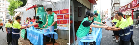 一份清涼包,承載著政企對勞動者的深切關懷;一個月補給,彰顯著聖元環保“泉心守護”的可持續擔當。當牛磺酸的能量注入疲憊的身軀,當冰袖為曬紅的雙臂帶來蔭涼,這份夏日裏的“聖”情厚意,正化為豐澤街頭最動人的文明風景。