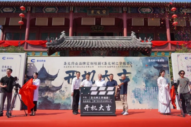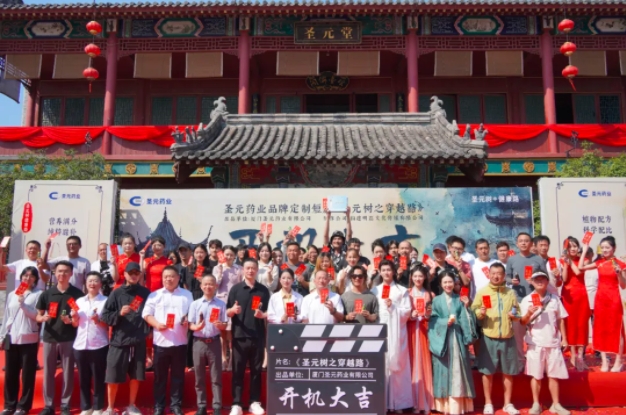 8月20日上午,橫店影視城華夏文化園芙蓉閣陽光正好,微風和煦,廈門聖元藥業有限公司品牌定製短劇《聖元樹之穿越路》在此盛大開機!