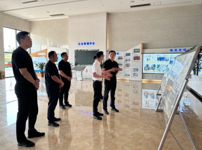 宋攀副縣長一行參觀一樓宣導大廳、中央控製室、參觀走廊通道,深入了解公司概況及設備實時運行、垃圾焚燒發電工藝、焚燒排放、五廢處理等情況。