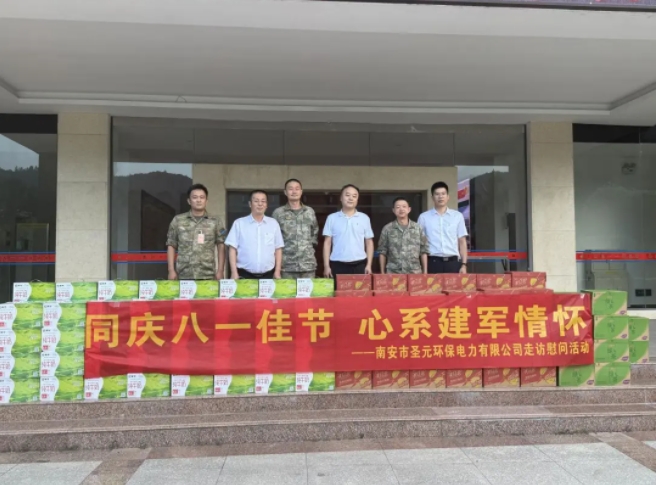 在“八一”建軍節來臨之際,為弘揚擁軍優屬、擁政愛民的優良傳統,聖元環保副總經理汪雲保、南安聖元運營總監何加焰一行前往共建部隊駐南安某部開展慰問活動,向堅守崗位、保家衛國的官兵們送上節日的問候和慰問品。