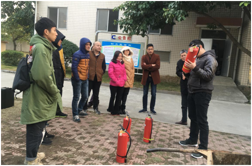 隨後孫老師講解了滅火器正確使用方法並實地演練。
