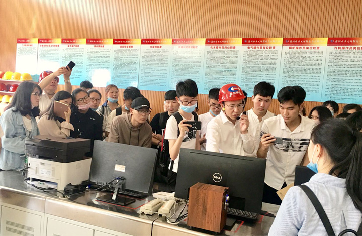 隨即學生們在周誌新副經理和羅煊總值長的引領下經過汽機房、鍋爐房近距離參觀了垃圾焚燒發電廠的三大主機以及主要尾氣處理設備後,一路來到垃圾焚燒發電廠的核心——中控室。在中控室,黃安定副總經理為學生們詳細介紹了莆田廠的運行情況以及垃圾焚燒過程中的環保管控措施。
