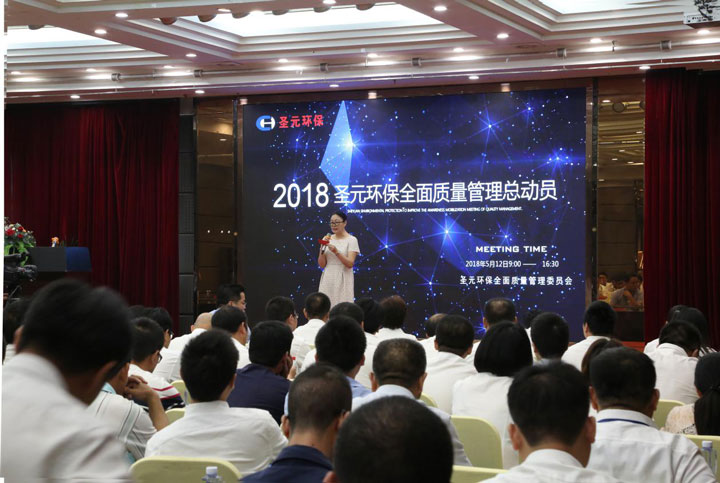 5月12日,汶川地震10周年的特殊日子,聖元環保在濱海酒店6樓召開全麵質量管理總動員大會。