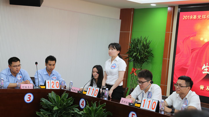 為紮實推進全國第18個“安全生產月”活動深入開展,全麵提升全員安全生產素質,積極營造“我要安全、我會安全、我能安全”的濃厚安全氛圍,公司於2018年6月12日在莆田市聖元環保電力有限公司主辦一場以“生命至上,安全發展”為主題的安全知識競賽和演講比賽。本次安全知識競賽活動是由安全環保部、辦公室和莆田聖元聯合舉辦,聖元環保副總經理汪雲保、莆田聖元總經理李仁、安全環保部主任章文滔、運行保障部主任曾昭雄,辦公室主任許燕擔任評委。此次比賽共有九組代表隊參賽,分別為總部代表隊,南安代表隊、莆田代表隊、漳浦代表隊,龍海安溪代表隊,寶洲北峰代表隊,盱眙代表隊,鄆城代表隊,曹縣代表隊組成。