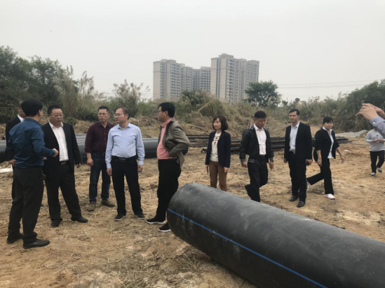 何才成市長一行在林誌輝廠長陪同下深入現場,檢查尾水排放改造工程。林誌輝廠長就前期準備工作、施工倒排計劃和現場施工情況做了詳細彙報。