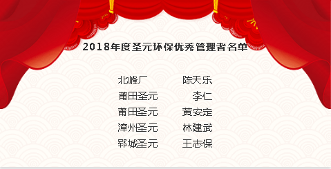 公司對2018年聖元環保先進個人進行表彰,掀起了一波波的熱烈掌聲。本年度共有53人榮獲優秀員工,其中王建全等10人榮獲聖元環保優秀員工;陳天樂等5人榮獲優秀管理者;李錄軍榮獲推行7Sguanlitebiejiang,jiangliyingronghuotuixingquanmianzhiliangguanlitebiejiang,zhaoxiujinronghuotebierongyujiang。gongsilingdaohelaibinqinziweitamenbanjiang,rangwomenyiqijianzhengzherongyushike。