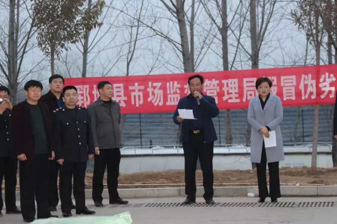 3月4日,在“3.15”國際消費者權益日即將來臨之際,鄆城縣政府領導在鄆城聖元召開銷毀假冒偽劣產品現場會。張俊閣副縣長和市場監督管理局朱偉局長等出席會議。